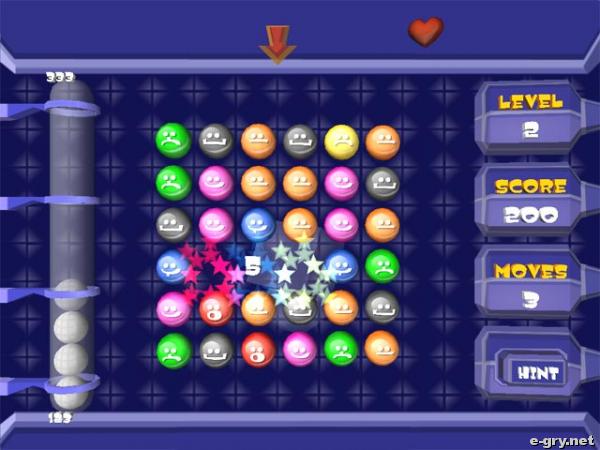 Z pozoru ta gra to jedynie przerzucanie klocków z różnymi kolorami i minkami, w ten sposób, by redukowały się w poziomie i pionie, najmniej musi ich być trzy. A tak naprawdę to świetna, wciągająca, bardzo, ale to bardzo interesująca gierka, która przez dłuższy czas nie pozwoli się oderwać od ekranu komputera. Macie na to moją gwarancję. Gra dzieli się na 4 odrębne części: arcade, action, classic, strategic. Spokojna rozgrywka, czy może na czas? Każdy znajdzie coś dla siebie, a przede wszystkim można sprawdzić swoje siły w każdej z nich i przekonać się, która nam najbardziej odpowiada.A, co do sterowania. Klikamy dowolny klocek i następnie sąsiadujący z nim w pionie, bądź w poziomie. Wtedy klocki zamienią się miejscami. Jednak zdarzy się taka sytuacja, że żaden nie przeskoczy. Po prostu nie mają szansy na redukcję, to nie chcą się ruszyć. Dlatego trzeba zwrócić uwagę, czy da się któreś usunąć. Czasem one lawinowo się redukują, ruszy się jeden i idzie za nim więcej.Sympatyczna gierka.