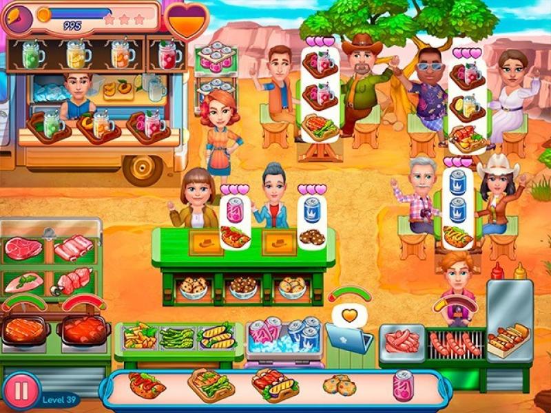 Ustaw w drodze biegowej, aby nakarmić głodne masy! Przewodnik Aspiring Super Chef o imieniu Claire, ponieważ służy swoim klientom różnorodną kuchnią haute od jej Suped Up Ciężarówki. Jak pomagasz Claire i jej wyścigu załogi, aby nadążyć za popytem, wykonasz zadania od przygotowywania potraw, aby robić zdjęcia zadowolonych gości. Im szybciej pracujesz i szczęśliwsi twoich klientów, tym większa twoja wskazówka! Między każdym szybkim poziomem, będziesz mógł wydać swoje zarobki na ulepszeniach do restauracji i obserwować humorystyczną historię o błędach Claire z dużym konkurentem I tożsamość tajemniczego krytyka spożywczego rozwija się z żywych znaków, wciągająca rozgrywka i mnóstwo materiałów bonusowych, Claire's Cruisin 'Cafe zaspokaja twoje pragnienie zabawy, nawet gdy opuszcza cię głodne!