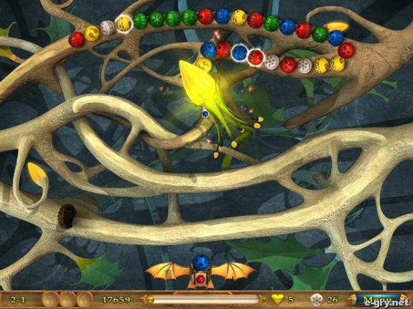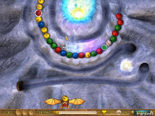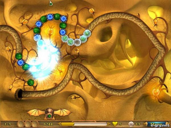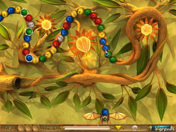 Cała zabawa polega na wystrzeliwaniu ze skrzydlatej procy kulek, które muszą trafić w sznur innych, które szybko suną do końca, w stronę tunelu. Należy łączyć te same kolory ze sobą, najmniej może ich być 3 sztuki, by zmniejszyć sznur i nie dopuścić do tego, by doszedł do końca. Pomocne są tu różnego rodzaju bonusy, które otrzymujemy, trafiając w daną kulkę inną tego samego koloru, bądź innego. Należy też zbierać monety, które wykorzystać można na ulepszenie bonusów.