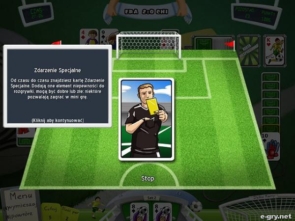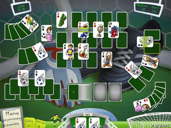Gra jest połączeniem gry w karty z niesamowitym zajęciem na długie wieczory. Pierwszy raz słyszysz zapewne o czymś takim, jak piłkarski pansjans. Ale nic straconego. Oto niesamowita, jedyna w swoim rodzaju gra dla każdego. Zabaw się i twórz odpowiednio kombinacje, by mieć przewagę na boisku. Weź udział w ponad 54 etapach wspaniałej, wciągającej rozgrywki. A wszystko po to, by zdobyć puchar świata. Prócz ciebie w walce o niego staje kilka innych państw, ale to ty możesz okazać się tym najlepszym! 48 drużyn z całego świata to naprawdę nie przelewki! Więc nie czekaj więcej, tylko w rytmie rockowych dźwięków rusz na zmierzenie się z najlepszymi tego świata i pokaż im, na co cię stać!