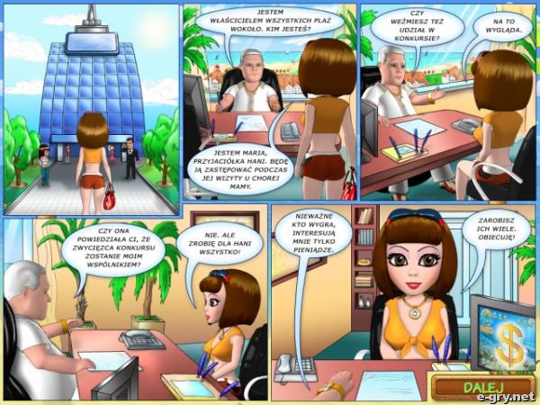 Idealna gra na taką porę roku, gdy zaczyna się robić ciepło, dużo osób już planuje odpoczynek na plaży... Po prostu - wakacje. Jednak nie dla każdego. Maria została zaproszona przez swoją przyjaciółkę Hanię na miły pobyt i odpoczynek na plaży. Nagle okazuje się, że Hania musi pilnie wyjechać, a dodatkowo bardzo chciała wziąć udział w zawodach odnośnie zarządzania plażą, by pokonać swojego byłego chłopaka. Nie wie, co robić. Jechać do matki, czy zostać? W tej trudnej decyzji pomaga jej Maria, mówiąc, że sama się wszystkim zajmie. Praca będzie głównie polegać na zapraszaniu gości na plażę, przyjmowaniu od nich zamówień, szybkiej obsłudze. Od tego ostatniego zależy, czy zdołasz zdobyć na tyle dużo punktów i pieniędzy, by móc wygrać. Jeśli klient będzie zadowolony z szybkości obsługi, masz szansę na większy napiwek, a co za tym idzie - na ulepszenia.