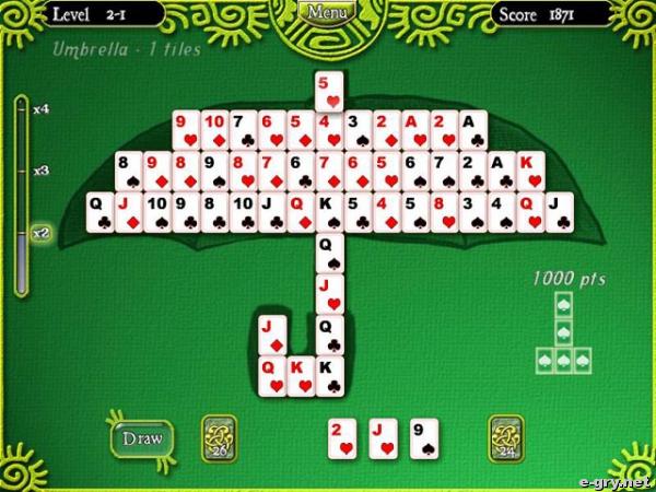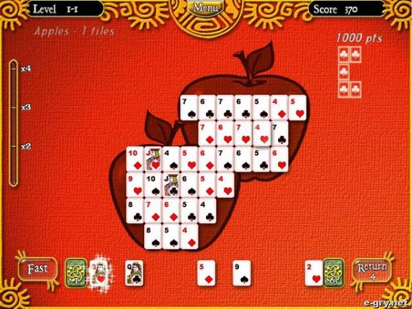 Z taką grą to chyba mało kto się już spotkał! Niby zwykły pasjans (wbrew tytułowi, który sugeruje coś trochę innego), ale polegający na tym, że kolory kart mogą być całkiem dowolne, nie mają tutaj żadnego znaczenia, natomiast ważne jest to, by wartość każdej karty była większa, bądź mniejsza od karty, jaka z nią sąsiaduje. Brzmi ciekawie? Bo tak jest. Trzeba się trochę natrudzić, by wyszło tak, jak być powinno. A wszystko to na tle różnych, świetnych plansz, dodatkowo nawet same karty za każdym razem są ułożone w inne kształy, co tylko potęguje fakt, że gra jest naprawdę fajna!