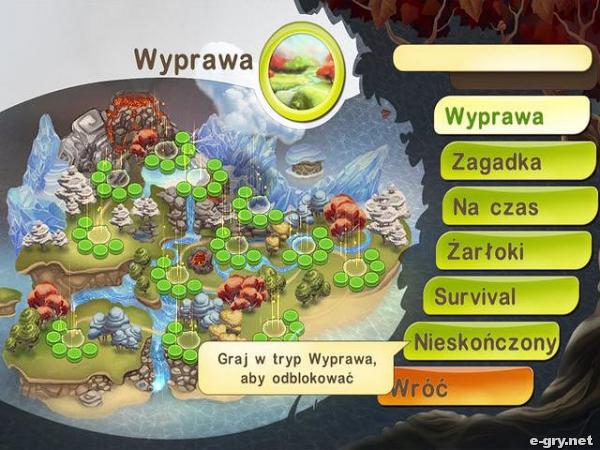 Gra zaczyna się od "wyprawy", a jeśli ją przejdziesz, odblokujesz kolejne rundy, tj. na czas, zagadka, żarłoki, survival, nieskończony.